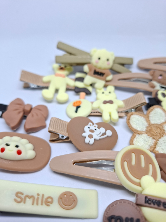 14 vnt. įvairių rudų atspalvių plaukų segtukų. Skirtingų dydžių ir formų.