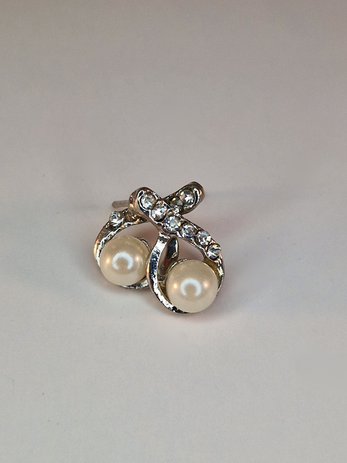 Minimalistiniai auskarai su akutėmis ir dirbtiniu perliuku.