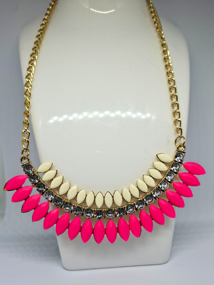 Kaklo papuošalas „Balta-rožinė“