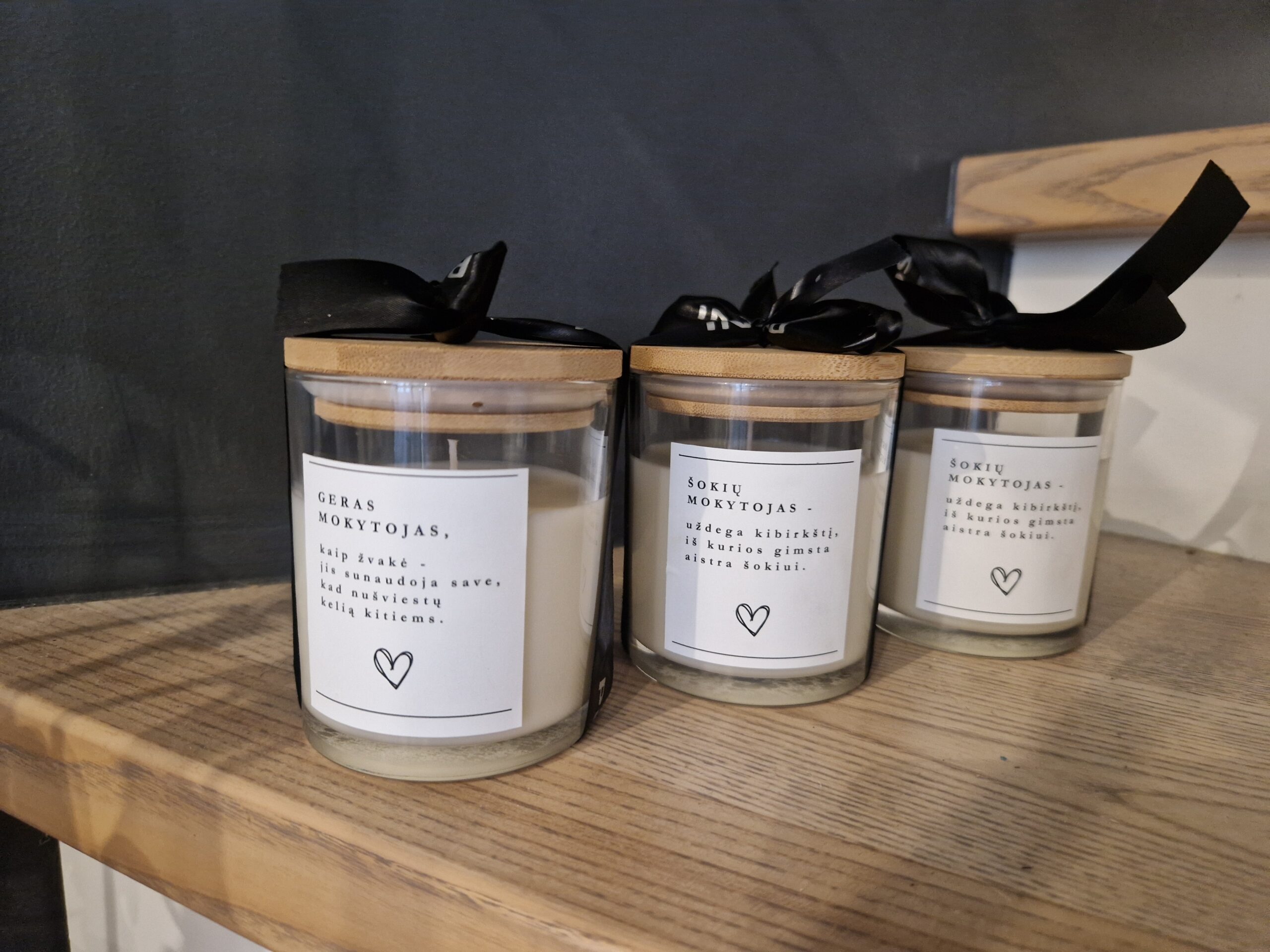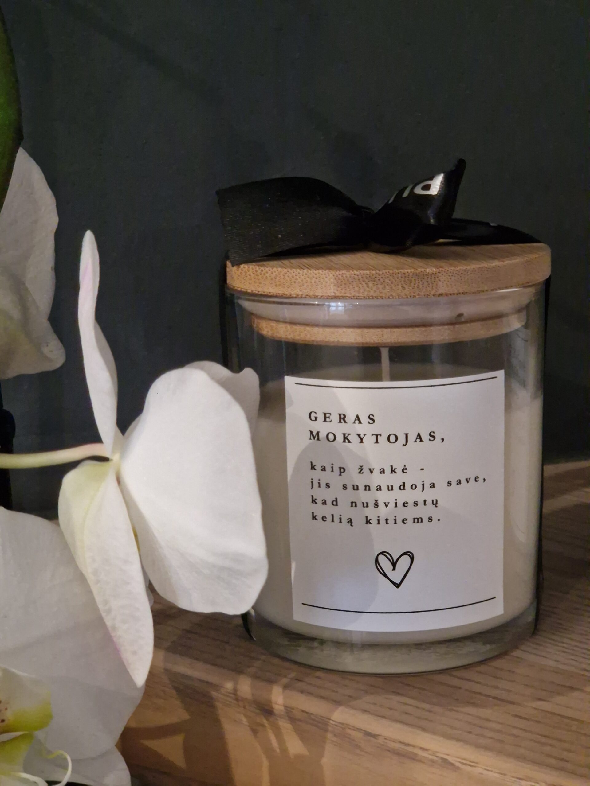 Pradžia / Šventinė atributika / Kitos šventės / Sojų vaško žvakė indelyje – dovana Mokytojai ar Mokytojui